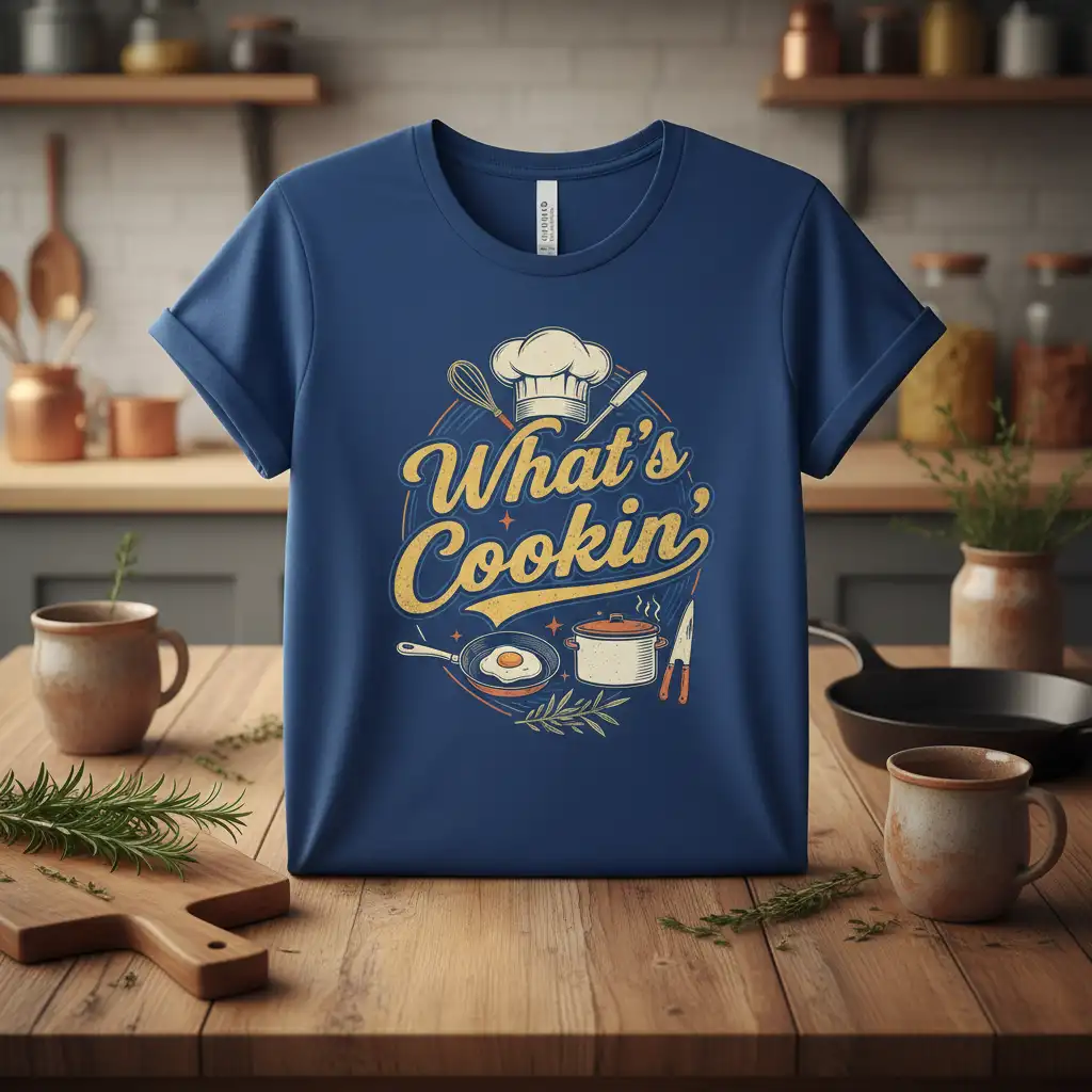 The “What’s Cookin'” t-shirt is a celebration of the journey involved in creating great food. From the initial idea to the final plating, every step is part of the delicious process. Wear it with pride as you embark on your next culinary adventure. This shirt is a reminder of the joy and satisfaction that comes from sharing good food with good company. Grab yours today and let the cooking commence!