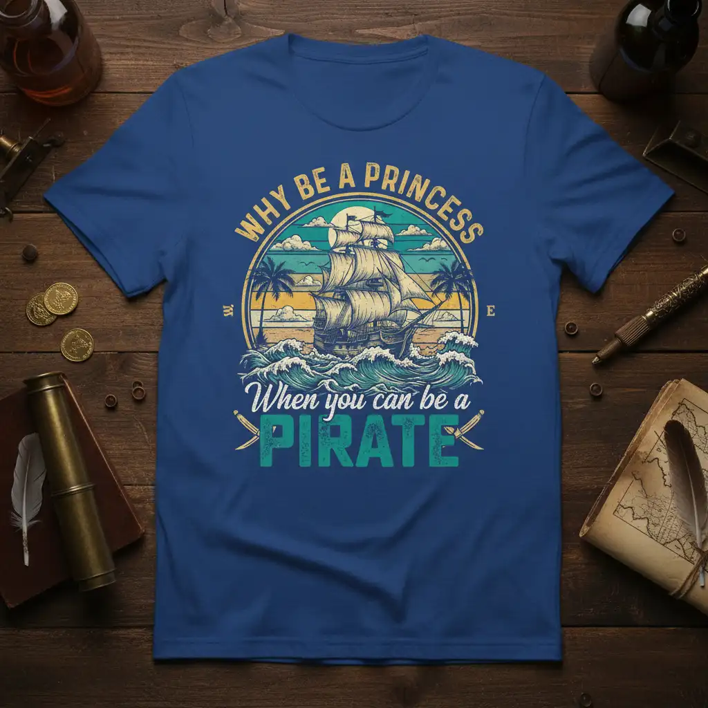 Don’t just dream of adventure; wear it proudly. This “Why Be A Princess When You Can Be A Pirate” t-shirt is your call to embrace the extraordinary. Its compelling message and striking design are sure to turn heads and spark conversations. Ready to make a statement and express your adventurous spirit? Grab this unique tee today and set sail on your own journey of style and self-expression!