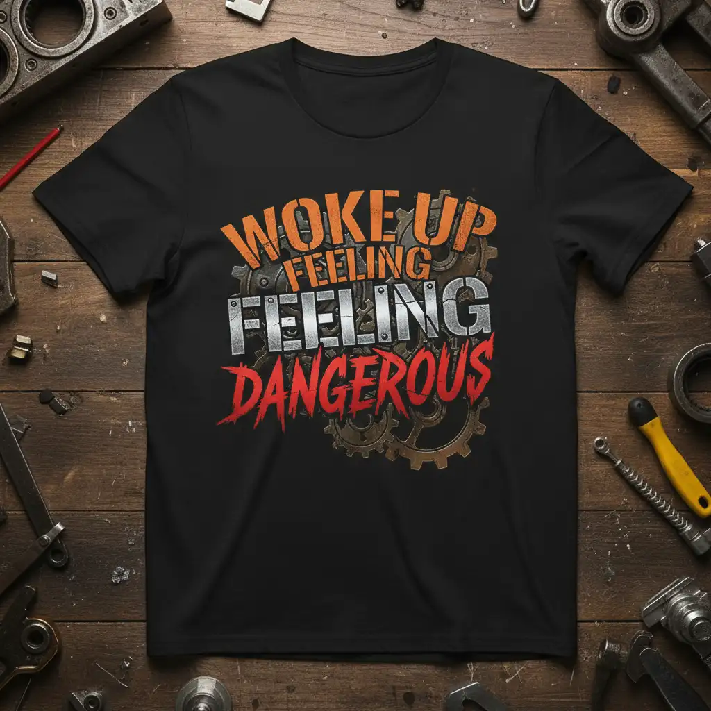 Looking for the perfect WOKE UP FEELING FEELING DANGEROUS? Woke Up Feeling Dangerous is more than just a phrase; it’s an attitude. This t-shirt is designed for those who embrace their power from the moment they open their eyes, ready to tackle the day with an unapologetic spirit. The striking design features bold, industrial-style lettering that commands attention, perfectly complemented by the gritty texture of gears in the background. It’s a statement piece that speaks volumes without saying a word, ideal for anyone who lives life on their own terms.
