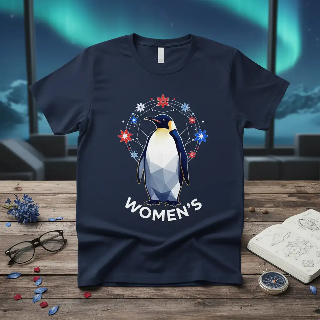 The “WOMEN’S” text is seamlessly integrated into the design, emphasizing the target audience and adding a personal touch. Whether you’re a dedicated penguin enthusiast, an admirer of unique art, or simply looking for a comfortable and stylish top, this tee is designed to delight. Its eye-catching appeal ensures you’ll stand out while celebrating your favorite animal.