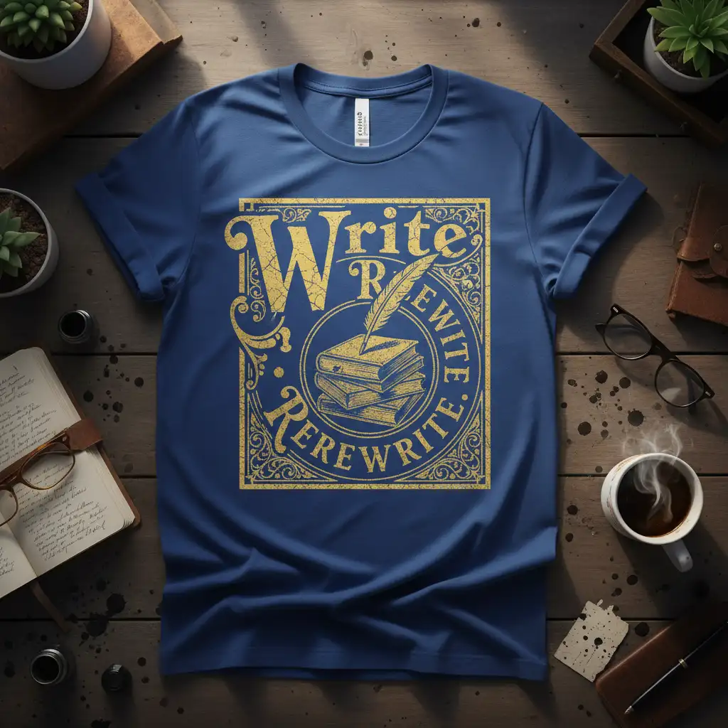 This Write Rewrite Rerewrite design resonates deeply with individuals who pour their hearts and minds into their work. It celebrates the dedication required to shape raw ideas into compelling narratives. The vintage aesthetic adds a timeless appeal, making it a stylish statement piece for casual wear or writing sessions. It’s the perfect way to express your identity as a creator and connect with a community that shares your passion for the written word.