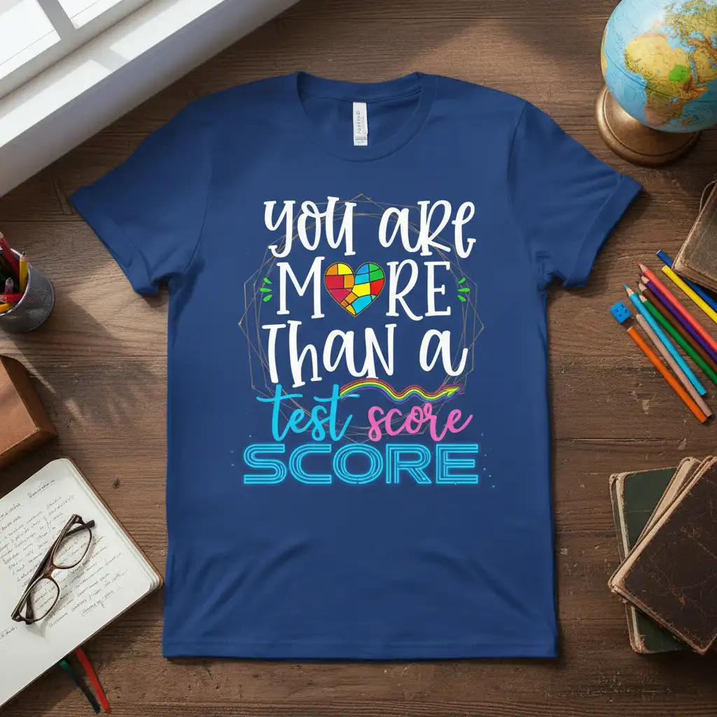 This t-shirt is more than just a fashion item; it’s a tool for advocacy and a symbol of hope. By wearing “you are MORE Than a test score SCORE,” you contribute to a broader conversation about education, assessment, and the holistic development of young minds. It’s a perfect gift for back-to-school, teacher appreciation week, or any occasion that calls for spreading a message of acceptance and empowerment. Order yours today and help spread this vital message!