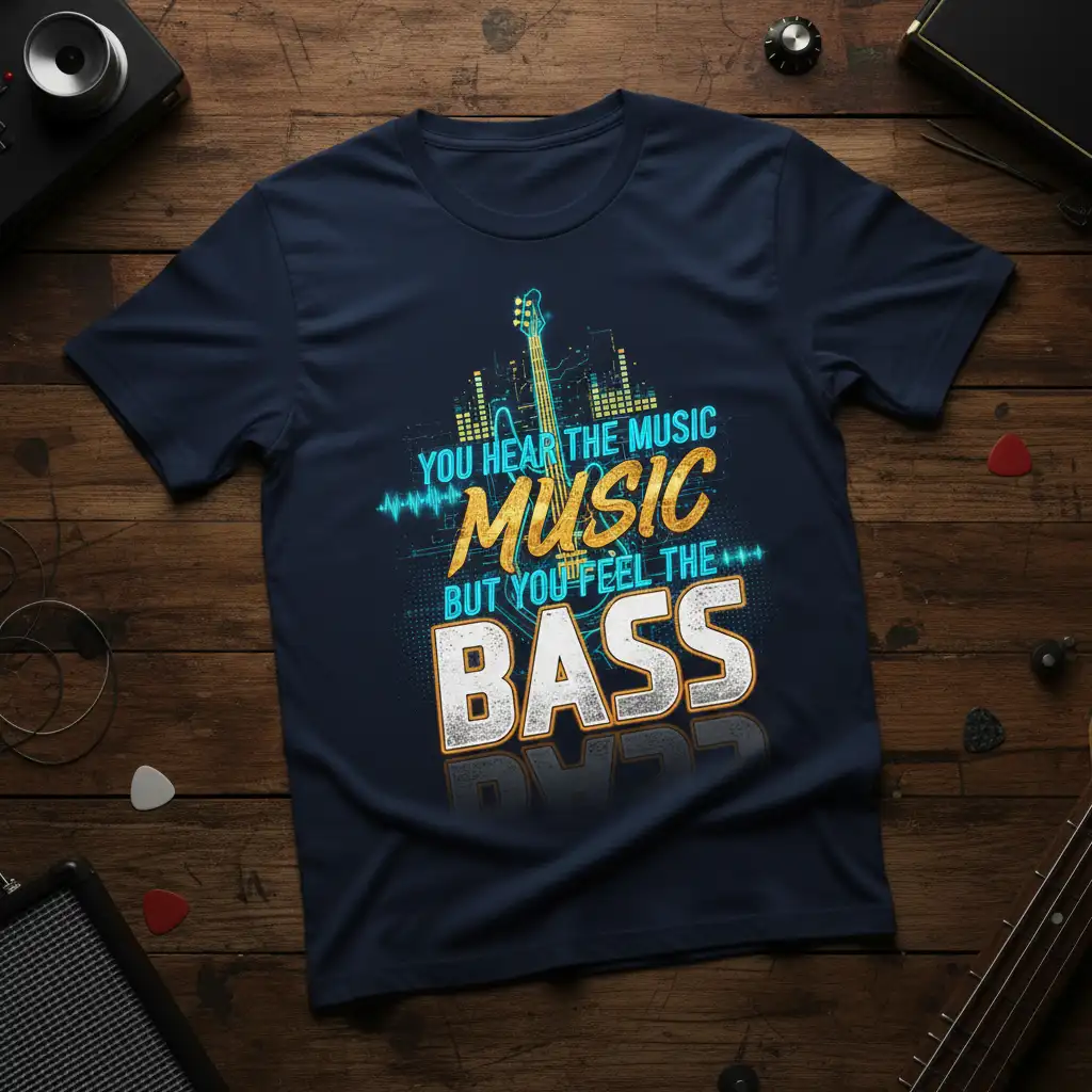 If you’re a bassist, you understand the unique connection you have with your instrument and the music you create. This t-shirt is designed to resonate with that feeling. It’s a declaration of your role in the band, emphasizing the tangible, felt experience of the bass versus just the audible music. The graphic captures the essence of what it means to be the backbone of a musical ensemble, providing the foundation that others build upon.
