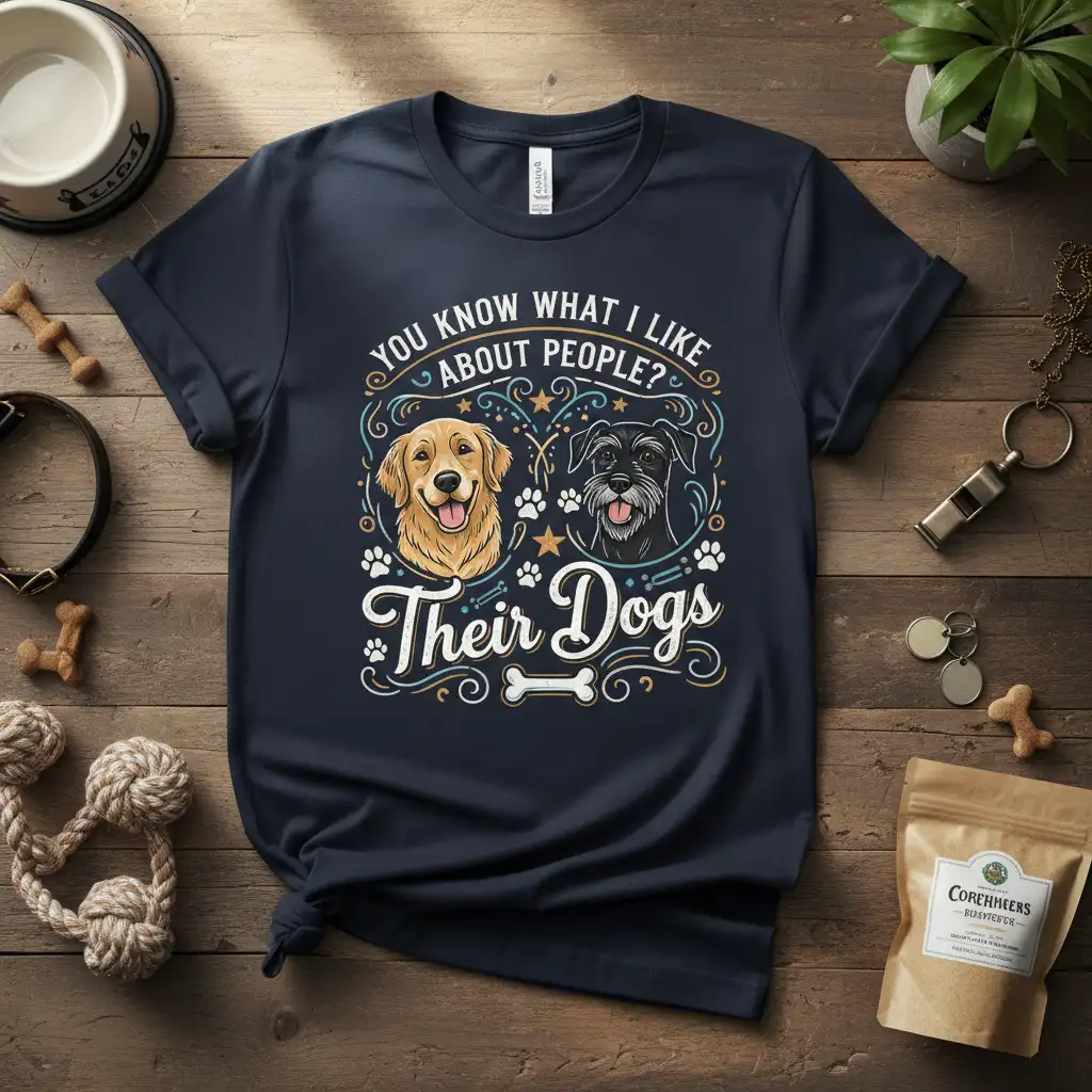 You Know What I Like About People? Their Dogs T-Shirt is more than just apparel; it’s a declaration of love for our four-legged family members. This unique design captures the sentiment that for many, the best part of human interaction is the connection they share with their canine companions. It’s a conversation starter and a badge of honor for anyone who believes dogs are truly man’s best friend. The artwork is detailed and vibrant, making it a standout piece that celebrates the special bond between humans and their dogs.